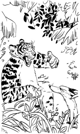 —আরে রে রে মহারাজ এ কী কাণ্ড! এমন করেন কেন? আপনি হলেন এই প্রকাণ্ড জঙ্গলের একমাত্র রাজা। আপনাকে এত দুর্বলমতি হলে কি মানায়? মনকে শক্ত করুন, জল মুছুন। বলে নিজের ঝাঁকড়া লেজটা বজ্রনাদের দিকে বাড়িয়ে দিল চতুরপতি শিয়াল।