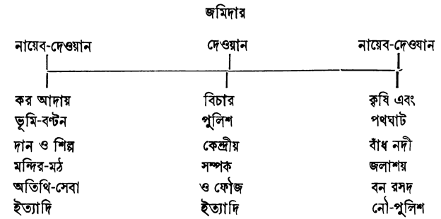 কার্যতঃ পুরানো জমিনদারী শাসন-ব্যবস্থা ইংরাজী ঢঙে কায়েম হলো। জেলা হাকিম-বা জমিনদারদের দেওয়ানদের মতো এবং তাঁর ডেপুটিরা পূর্বতন দারোগার মতো হন। প্রশাসন-ব্যবস্থা ইংরাজরা আমাদের শেখায় নি।