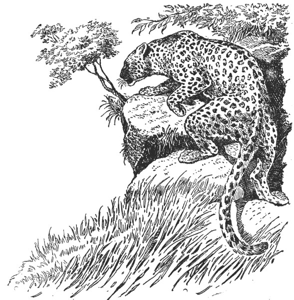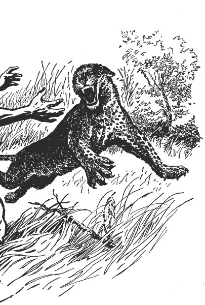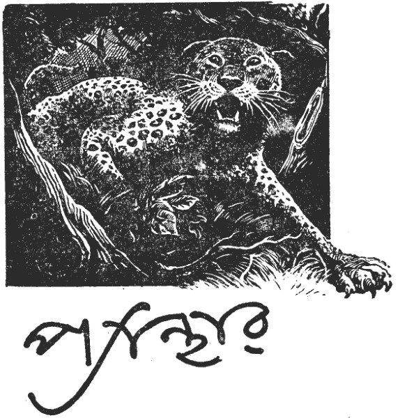 যখন ঠিক সূর্যাস্ত হয়েছে, সন্ধ্যার অন্ধকার ক্রমশ ঘনিয়ে আসছে, তখন দেখতে পেলাম বাঘ আসছে— বেশ বড়ো একটা প্যান্থার। নিঃশব্দে ধীরে ধীরে আসছে, একটুও চলার শব্দ পর্যন্ত নেই। কয়েক পা এসে থামছে আর চারদিকে চাইছে। সোজা না এসে বক্র সর্পিল-গতিতে একবার এদিকে একবার ওদিকে সরে গিয়ে মড়ির দিকে একটু একটু করে এগিয়ে আসছে। ক্রমশ মড়ির খুব কাছে এসে, বিড়াল যেমন করে থাবা গেড়ে বসে, সেইরকম করে মাচানের দিকে মুখ করে বসল। সেই সময় আমি রাইফেল তুলে নিয়ে যেমন লক্ষ করতে যাচ্ছি, আমার অত্যন্ত সাবধানতা সত্ত্বেও রাইফেলের নলা একটা পাতায় লেগে একটু খুস করে শব্দ করল। শব্দ হতেই প্যান্থারটা চকিতে মুখ তুলে গাছের উপরের দিকে, অর্থাৎ মাচানের দিকে তাকিয়ে দেখতে লাগল। তার সঙ্গে আমার চোখাচোখি হল, কিন্তু আমি একটুও না নড়ে নিমেষ না ফেলে, তার দিকে চেয়ে রইলাম। অন্ধকার হয়ে আসছিল আর আমি পাতার বেড়ার পিছনে ছিলাম বলে বাঘ পাতার আড়ালে আমার চোখ দেখতে পেল না। অল্পক্ষণ ওইরকম তাকিয়ে থেকে সে আবার দৃষ্টি নামিয়ে নিয়ে তার আশেপাশে চারদিকে চেয়ে দেখতে লাগল। সেই অবকাশে আমি গুলি করলাম। রাইফেলের আওয়াজের সঙ্গে সঙ্গে বাঘ একটা গর্জন করে এক লাফে জঙ্গলের ভিতর ঢুকে অদৃশ্য হল। আমি বুঝতে পারলাম গুলি বুকে না লেগে পেটে লাগল, কারণ বুকে ওই প্রচণ্ড রাইফেলের গুলি লাগলে বাঘ ওইখানেই উলটে পড়ত।