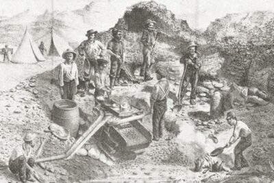 ৪৩। গোল্ডরাশের (Gold rush) সময় ক্যালিফোর্নিয়ার খনিশ্রমিকরা।
