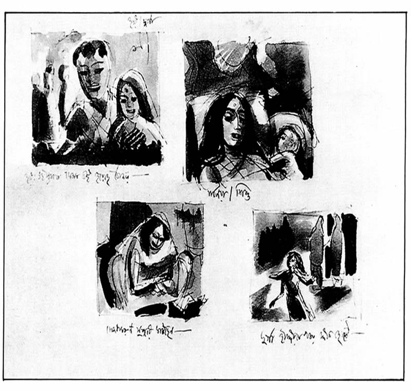 পথের পাঁচালি: লেখকের আঁকা চিত্র-কাহিনী, ওয়াশ ড্রইং-এর দুটি পৃষ্ঠা।