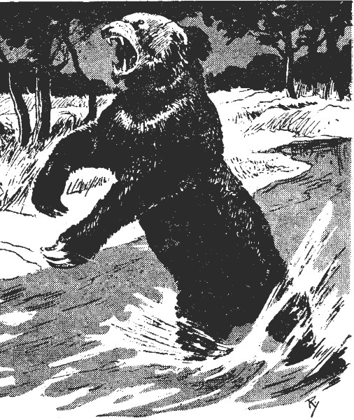 আমায় বড়কু বলে গেল, ওপার থেকে ভালুক সোজা সোতী পার হয়ে আসবে। আমরা যেদিক থেকে এসেছিলাম বড়কু সেদিকে চলে গেল। বোধ হয় কুড়ি-পঁচিশ মিনিট বাদে শুনলাম, ওপারের জঙ্গলের ভেতর ঠকঠক করে শব্দ হচ্ছে। দূরে গাছের গায়ে লাঠির আঘাত করলে যেরকম শব্দ হয়, সেইরকম শব্দ। কখনো কাছে, কখনো দূরে; একবার ডাইনে, একবার বাঁয়ে; এইভাবে শব্দ চলতে লাগল। হঠাৎ দেখি, একটা প্রকাণ্ড ভাল্লুক ঝোপের ভেতর দিয়ে আসছে নদীর দিকে, ঝোপের উপর তার মাথাটা দেখা যাচ্ছে। আমি যেখানে দাঁড়িয়ে আছি তার প্রায় চারশো গজ দূরে হবে। সে আসছে চার হাতে-পায়ে, কিন্তু ঝোপের উপর তার মাথা দেখা যাচ্ছে। মস্ত ভালুক দেখে প্রাণে বড়োই আনন্দ হল। ভালুকটা সোজা এসে সোতীটা একবার এদিক-ওদিক দেখে নিল, তারপর সোতীতে নেমে আমার সোজা পার হতে লাগল। মাঝামাঝি যখন এসেছে তখন বন্দুক তুলে গুলি করলাম। গুলি খেয়েই চিৎকার করে পড়ে গেল— সে কী বিকট চিৎকার, সারা বন কেঁপে উঠল তার চিৎকারে! আহত বাঘের গর্জনও ভয়ংকর, কিন্তু এ যেন তাকেও অতিক্রম করে। ভালুকটা পড়ে যাবার পরই চক্ষের নিমেষে উঠে তেড়ে এল আমার দিকে, যাকে বলে চার্জ করল। আবার একটা গুলি করলাম, সেটা তার পেছনের বাঁ-পায়ে লাগল। প্রায় ঘাড়ের উপর এসে পড়েছে তখন জন্তুটা। আবার গুলি করলাম, কিন্তু এ গুলিটা লাগল না; কিন্তু না লাগলেও এই গুলিটাই আমাকে আসন্ন মৃত্যুর হাত থেকে রক্ষা করল। অত কাছ থেকে গুলি করার জন্য ভালুকটা যেন বিস্ফোরণের ধাক্কায় আমাকে এড়িয়ে পাশের নালাটিতে ঢুকে পড়ল। ছুটে তার পিছু নিতে গিয়ে আমার বুকপকেট থেকে কতগুলো টোটা পড়ে গেল। সেগুলো কুড়িয়ে পকেটে পুরেছি, এমন সময় বড়কু মাঝি এসে বলল, 'ভালুক কই?'