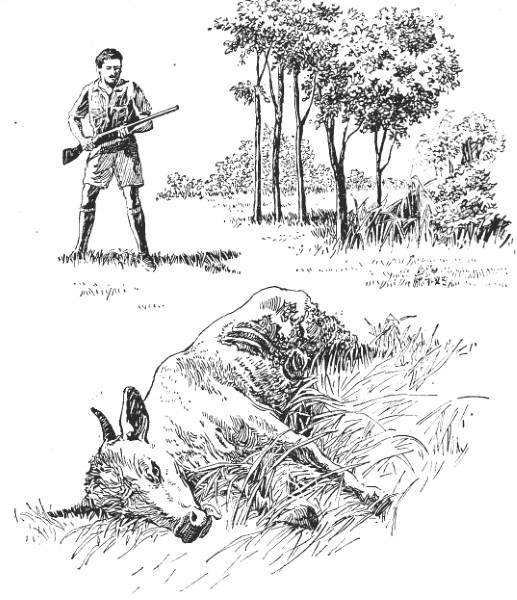 প্রায় ঘণ্টাখানেক প্রতীক্ষার পর বনের মধ্যে হতে যেসব শিকারিরা বাঘ তাড়া করে আনছিল তাদের শোরগোল শোনা গেল। আরও কিছুক্ষণ যাবার পর আমাদের মধ্যে জনকয়েককে পাহাড়ের মাথার উপর দেখতে পেলাম। মুহূর্তের মধ্যে দেখলাম স্থূলাঙ্গী একটি ব্যাঘ্রী ত্বরিত গমনে নালার মধ্য-ঘাট পার হয়ে আসছে। নিমেষের জন্য সে প্রস্তরস্তূপের ব্যবধানে অদৃশ্য হয়ে গিয়েছিল। পরমুহূর্তেই তার মস্তক আর গ্রীবাদেশ দৃষ্টিগোচর হবা-মাত্রই আমি তার স্কন্ধদেশ লক্ষ করে বন্দুক ছুড়লাম। সে আমার বাঁয়ে দশ গজ দূরে ছিল। আমার বন্দুক তুলতে সামান্য কী একটু শব্দ হয়েছিল তাতেই সে ঘাড় ফিরালে। গুলি তার কানের মধ্যে দিয়ে ঘাড়ে গিয়ে লাগল। তৎক্ষণাৎ সে ধূলিলুণ্ঠিত হয়ে পড়ল। দ্বিতীয় গুলি মারবার জন্যে প্রস্তুত হচ্ছিলাম, কিন্তু যখন দেখলাম সে আর নড়াচড়া করলে না, তখন বন্দুকের যে নলটি খালি হয়ে গিয়েছিল সেইটি আবার পুরে কী ঘটে দেখবার জন্যে অপেক্ষা করে রইলাম। শিকারিরা কয়েকজন পাহাড়ের মাথা হতে একটু নেমে আমার ডাইনের দিকে, আর বাকি কয়েকজন সম্মুখে কিছু দূরে সতর্ক হয়ে দাঁড়িয়ে ছিল। যতক্ষণ মৃগয়াভিনয়ের যবনিকাপতন না হয় ততক্ষণ এ সাবধানতা বিশেষ আবশ্যক। জয়গর্বে উৎফুল্ল আমি আর স্থির হয়ে থাকতে পারলাম না। সংকেতসুচক বাঁশিটি বাজিয়ে দিলাম। তখনই চারিদিক হতে জয় জয় শব্দে মহাকোলাহলে সকলে সে সংকেতে মহানন্দ প্রকাশ করলে ও নিকটে এল। K. G. B. আর গৌঁটিয়া দুজনেই আমার কাছাকাছি ছিলেন। সবাই এসে ঘিরে দাঁড়িয়ে ব্যাঘ্ররাজ-পত্নীর রাজযোগ্য অঙ্গাবরণ আর বর্ণের প্রশংসা করতে লাগলেন।