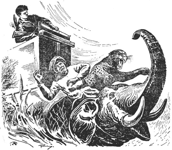 মহেশবাবুর হাওদা, রাজা জগৎকিশোরের 'শম্ভুপ্রসাদ' নামক দাঁতালের (tusker) উপর ছিল। বোধহয় 'শম্ভুপ্রসাদ' বাঘের ঘাড়েই পাড়া দিবার উপক্রম করিয়াছিল, অথবা কি কারণে বলিতে পারি না, হঠাৎ বাঘের ডাক শুনিয়া মহেশবাবুর হাওদার দিকে তাকাইয়া দেখি, বাঘ 'শম্ভুপ্রসাদে'র মাথায় উঠিয়া কামড়াইয়া ধরিয়াছে; কিন্তু শরীরটা হাতীর কানের পাশ দিয়া ঝুলিতেছে। হাতী চুপ করিয়া দাঁড়াইয়া আছে, কিন্তু তাহার প্রকাণ্ড কান দুইটা ফাঁক করিয়া মেলাইয়া দিয়েছে। (এইভাবে হাতীর কান ফাঁক করিয়া দাঁড়ানোকে কান ফাঁদাইয়া দাঁড়ান বলে।) সেই সঙ্গে মহেশবাবু, হাওদার সম্মুখে ঝুঁকিয়া 500 Express rifle দিয়া বাঘকে নিশানা করিতেছিলেন। হাতীর কানে বাঘ ঢাকা পড়িয়া গেলেও তিনি মনে করিতেছিলেন, বাঘকেই নিশানা করিতেছেন। আমরা এই অবস্থা দেখিয়া ক্রমাগত চেঁচাইয়া গুলি মারিতে নিষেধ করিতেছি; কিন্তু তাঁহার সেদিকে ভ্রূক্ষেপ নাই। মহেশবাবু এত উত্তেজিত হইয়া পড়িয়াছিলেন যে, আমাদের চীৎকার তাঁহার কানে পৌঁছে নাই। তিনি দম করিয়া হাতীর কানেই গুলি করিয়া বসিলেন। বন্দুকের আওয়াজে বাঘ হাতী ছাড়িয়া দিয়া লাফাইয়া আর এক ঝোপের ভিতর ঢুকিল। এদিকে মাহুতও 'আমাকে মারিয়া ফেলিয়াছে' বলিয়া আর্তনাদ করিয়া উঠিল। দেখা গেল, Express-এর shell গুলি, হাতীর কানে লাগিয়া কাটিয়া টুকরা-টুকরা হইয়া গিয়াছে ও তাহারই কয়েক টুকরা মাহুতের পায়ে বিঁধিয়া গিয়াছে।